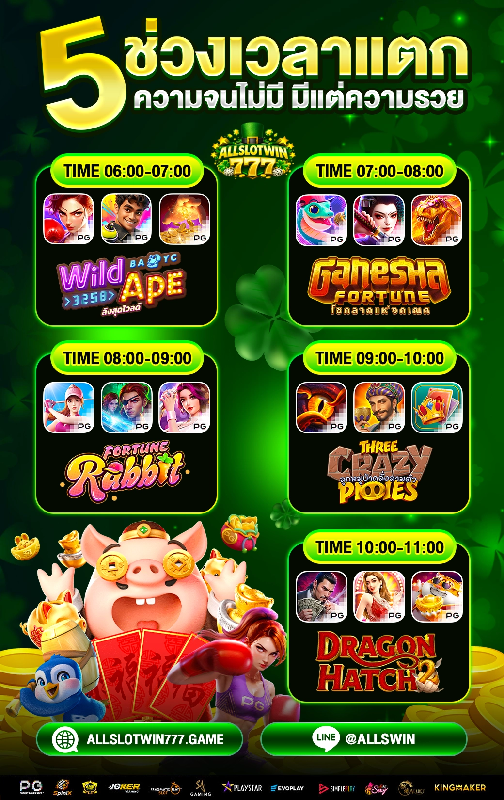 Allslotwin 777 มอบสิทธิพิเศษการเข้าเล่น สล็อตออนไลน์ สุดคุ้มแบบไร้ข้อผูกมัด เปิดโอกาสให้คุณสนุกกับเกมจาก เว็บตรง อันดับ 1 ได้ครบทุกค่ายตลอด 24 ชั่วโมง รับโบนัสสล็อตสำหรับยูสใหม่ ให้การฝาก-ถอนเงินเป็นเรื่องง่าย มั่นใจได้ 100% สล็อตแตกหนัก ของจริง รวมเกมจากค่ายลิขสิทธิ์แท้ระดับโลกอย่าง สล็อต PG ที่อัดแน่นด้วยแจ็คพอตจำนวนมาก สมัคร เว็บสล็อต แล้วคุณสามารถทำรายการถอนกำไรได้ทันที พร้อมรับโปรสุดพิเศษแบบไม่มีเงื่อนไขจุกจิก ปั่นสล็อตได้ยาวนานไม่จำกัดเวลา และรับเงินจริงทุกรอบการหมุนบน สล็อตเว็บตรง ที่ยอดเยี่ยมที่สุดในไทย ซึ่งมีโปรโมชั่นสุดร้อนแรงที่ห้ามพลาด ดังนี้